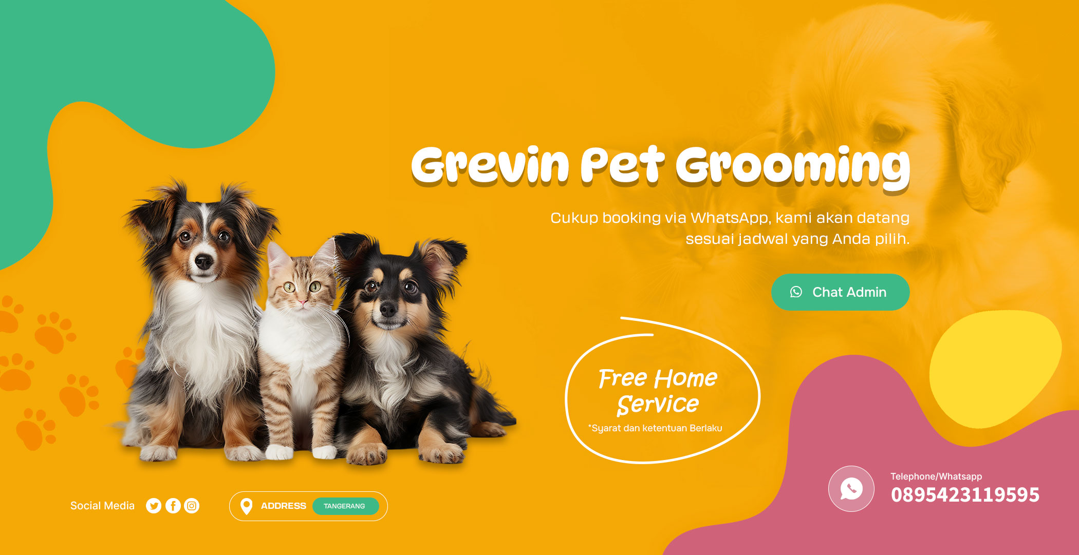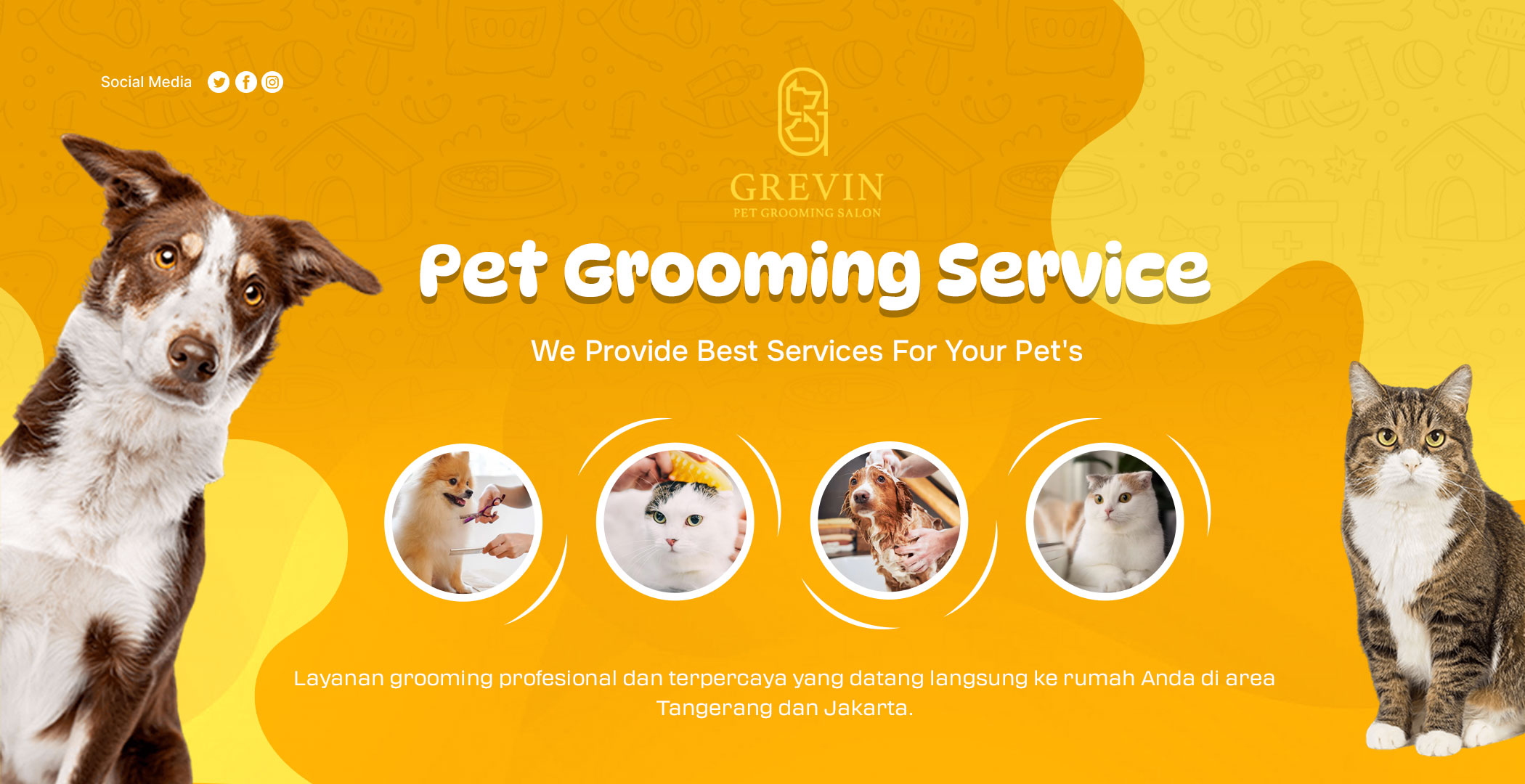 Grevin Pet Salon Grooming adalah layanan grooming profesional yang datang langsung ke rumah anda di area Tangerang dan Jakarta. Tim berpengalaman kami menyediakan perawatan lengkap untuk anjing dan kucing anda, termasuk mandi, potong kuku, pemotongan bulu, dan pemeriksaan kesehatan.